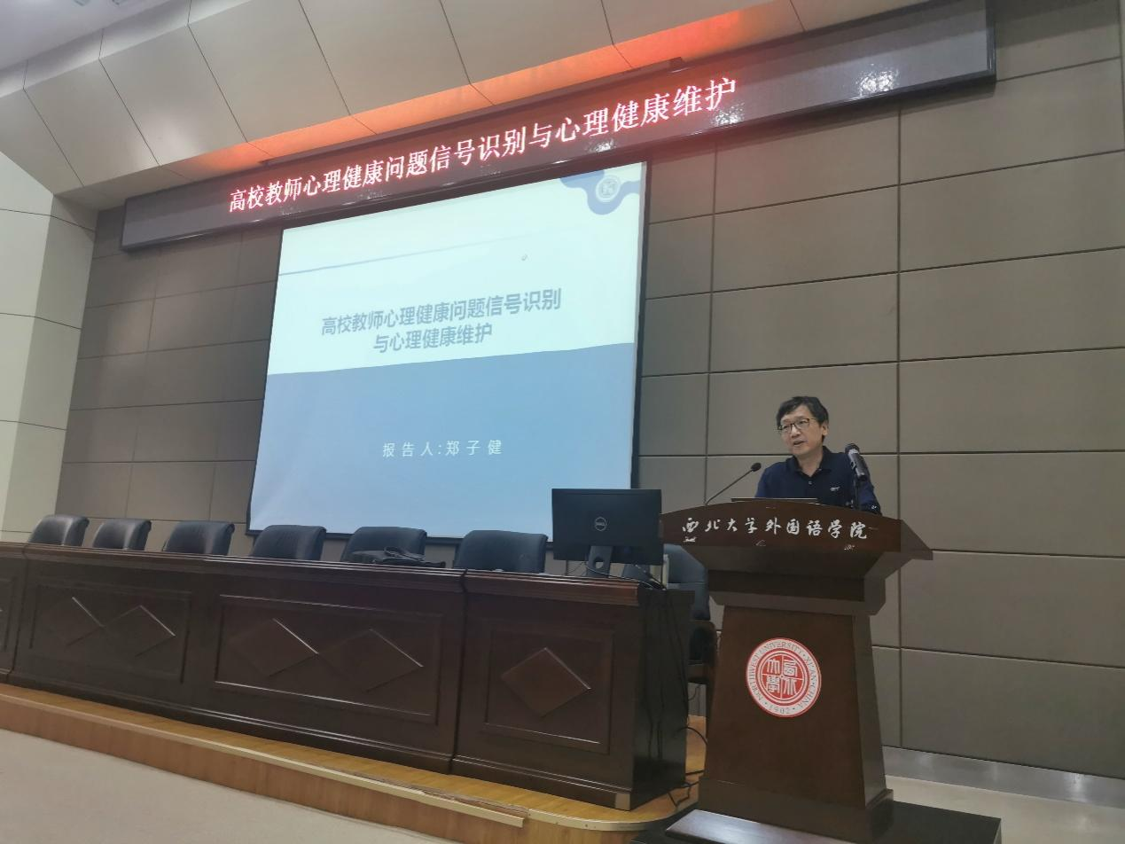 To support the mental health of our faculty and staff and enhance their resilience to stress, our school organized a lecture on April 17, 2024, in the Second Classroom Auditorium. The lecture, titled “Identifying Psychological Issues and Maintaining Mental Health for University Teachers”, was delivered by Professor Zheng Zijian, a psychology professor at the School of Public Administration, Northwest University, and a graduate advisor for applied psychology students. More than 20 faculty and staff members attended the event.