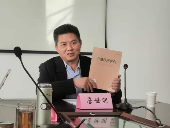 讲座伊始,詹世明主任介绍了《西亚非洲》及中国非洲研究院的基本情况,并赠予外国语学院院长胡宗锋教授中国非洲研究院创刊《中国非洲学刊》。