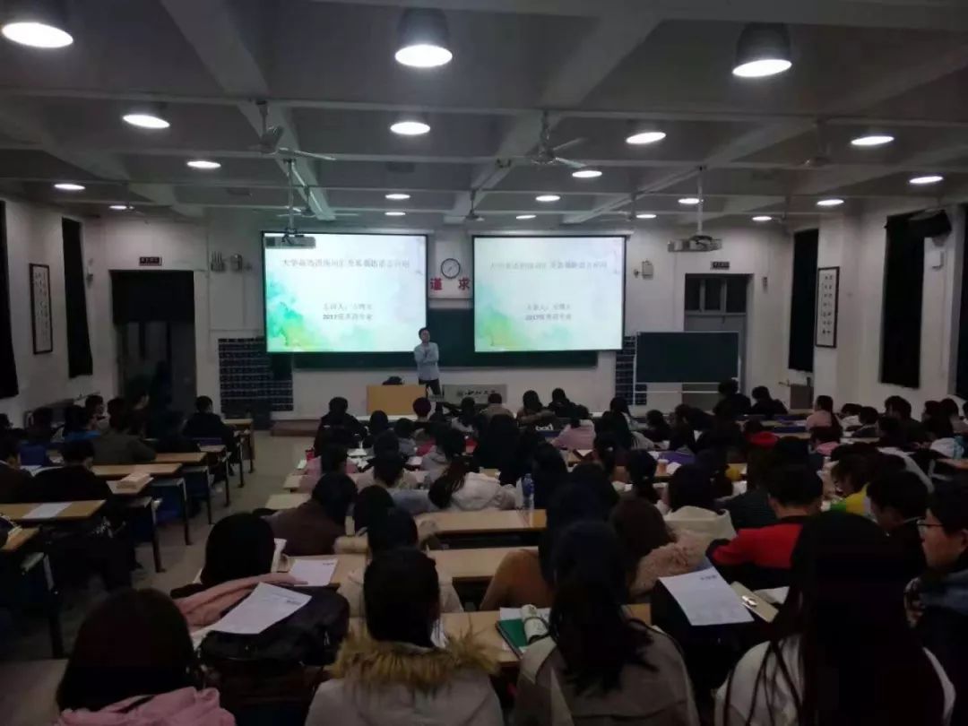 第二位授课教师是梁怡同学,她用正宗而又标准的口语发音吸引着在场每一位同学的注意力。第一节课上,学姐主要为我们讲解了英语听力的相关知识,分享实用技巧;第二节课上为在场的同学们进行答疑。面对大家角度各异的问题,学姐对答如流,解决了同学们积存已久的难题。
