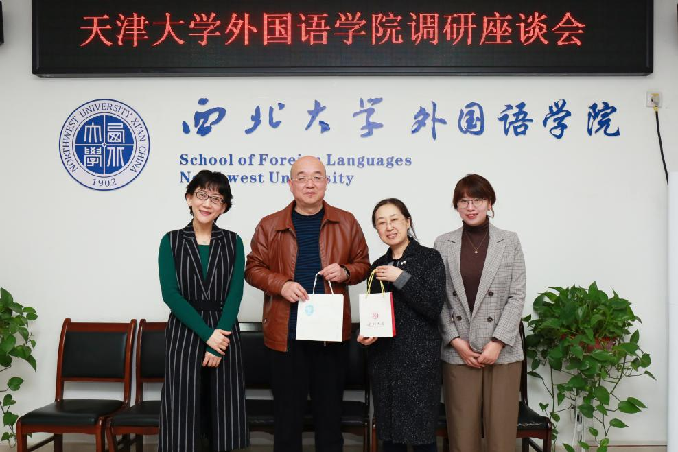 院长曹若男就学科发展方向、科研资源整合、英语教学规划、学生就业创业等方面进行介绍,重点强调学科发展要注重交叉融合,联合思政、史学、人工智能、数字平台等多领域打通校内外资源,不断向国家主旋律靠拢,继续推动新文科发展。同时,从人才引进、师资重构、区域国别学科建设等方面与天津大学外国语学院一行进行深入交流。